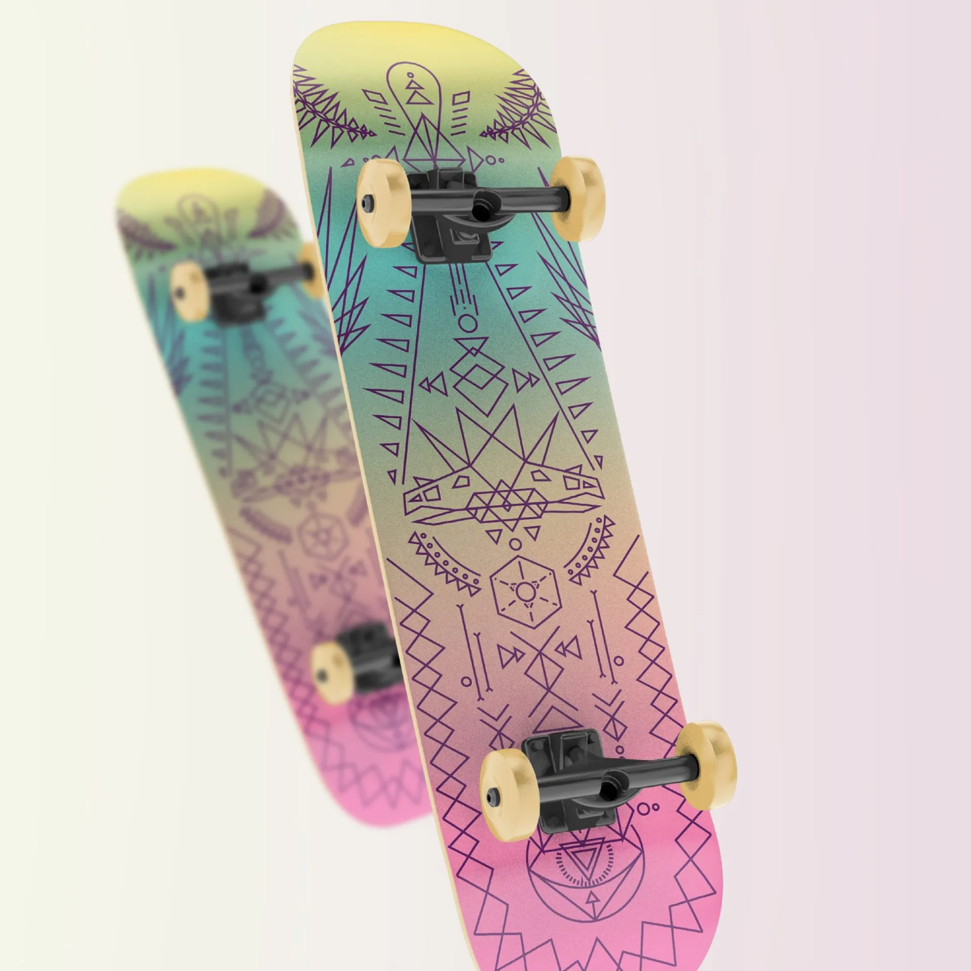 Don’t worry, there’s no math test here. Just epic geometric designs with a sweet color gradient for our dyno-loving skaters.